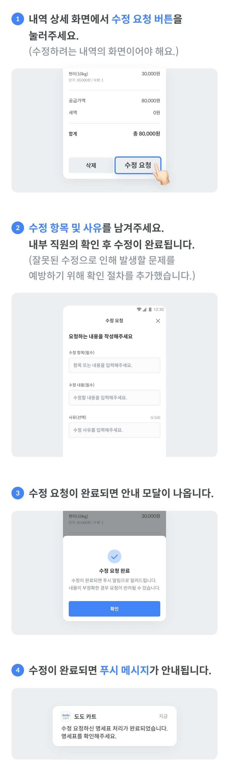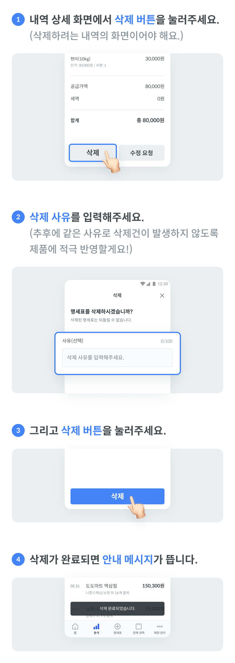 카카오톡으로 명세표 수정/삭제 요청은 그만~